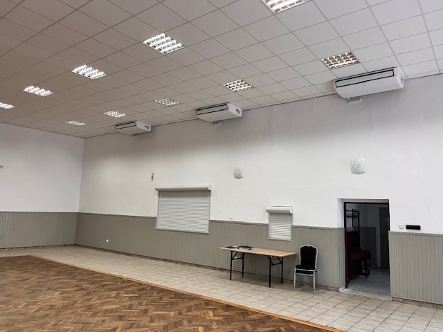 W Sali głównej zamontowano 6 podstropowych jednostek nawiewnych oraz 3 jednostki w pozostałej części budynku. Zastosowano jeden układ grzejny ze źródłem ciepła w postaci pompy ciepła typu powietrze/powietrze. Urządzenia te umożliwiają całoroczną pracę w zakresie temperatur od -25°C do +35°C, oferując funkcje zarówno ogrzewania, jak i chłodzenia w okresie letnim.