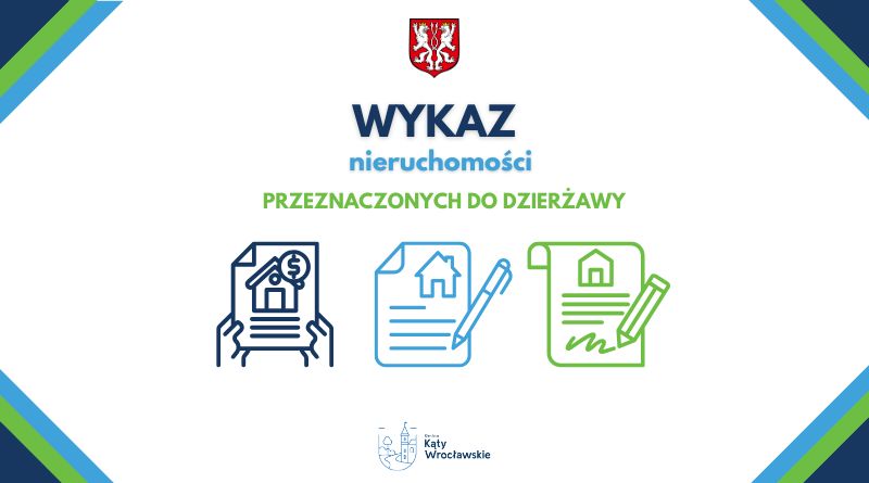 Burmistrz Miasta i Gminy Kąty Wrocławskie informuje, że na tablicy ogłoszeń tut. urzędu zostały wywieszone i podane do publicznej wiadomości, na okres 21 dni od dnia 08 września 2025 r. do dnia 29 września 2025 r., wykaz nieruchomości przeznaczonej do dzierżawy stanowiącej własność Gminy Kąty Wrocławskie:
