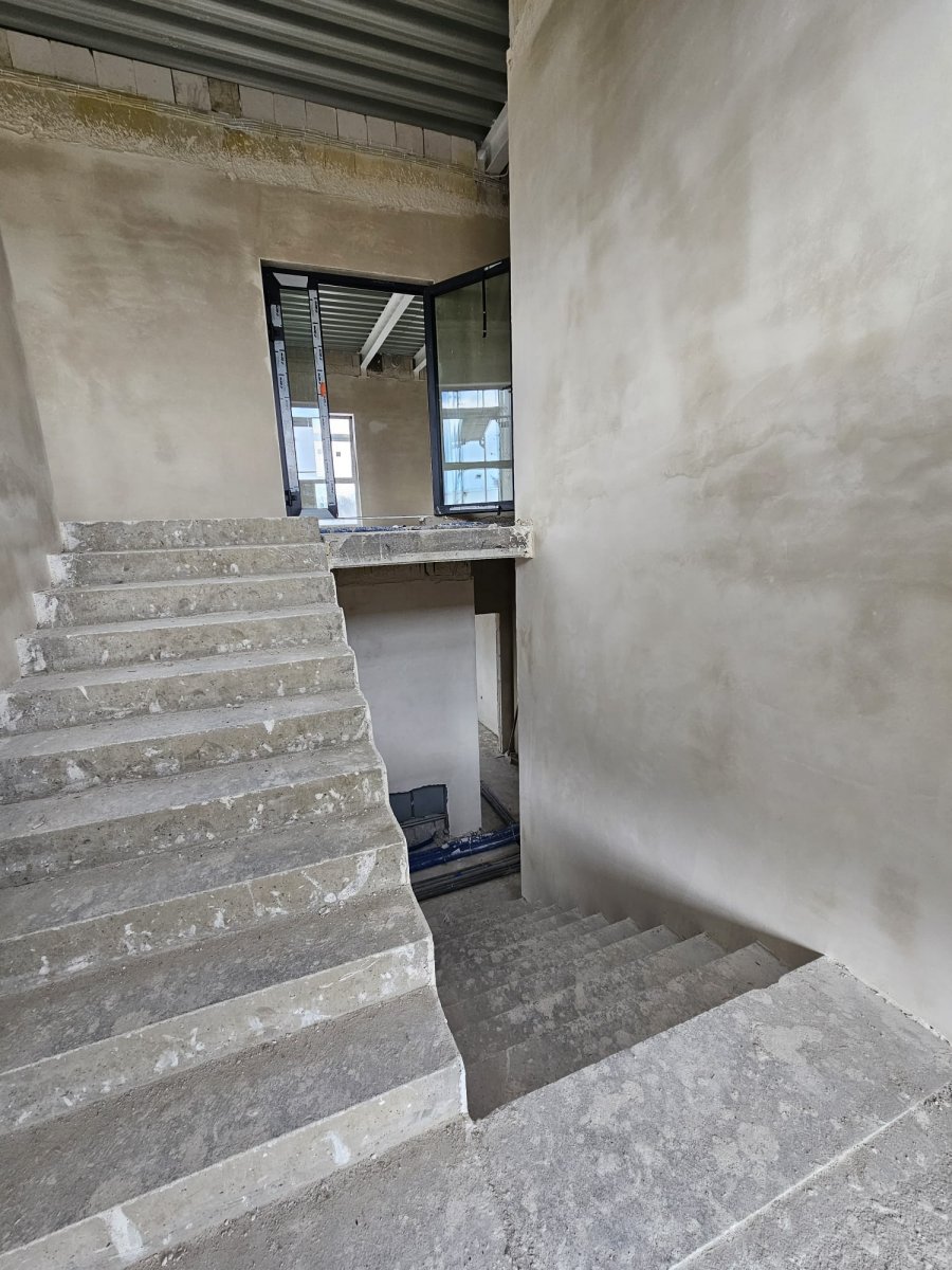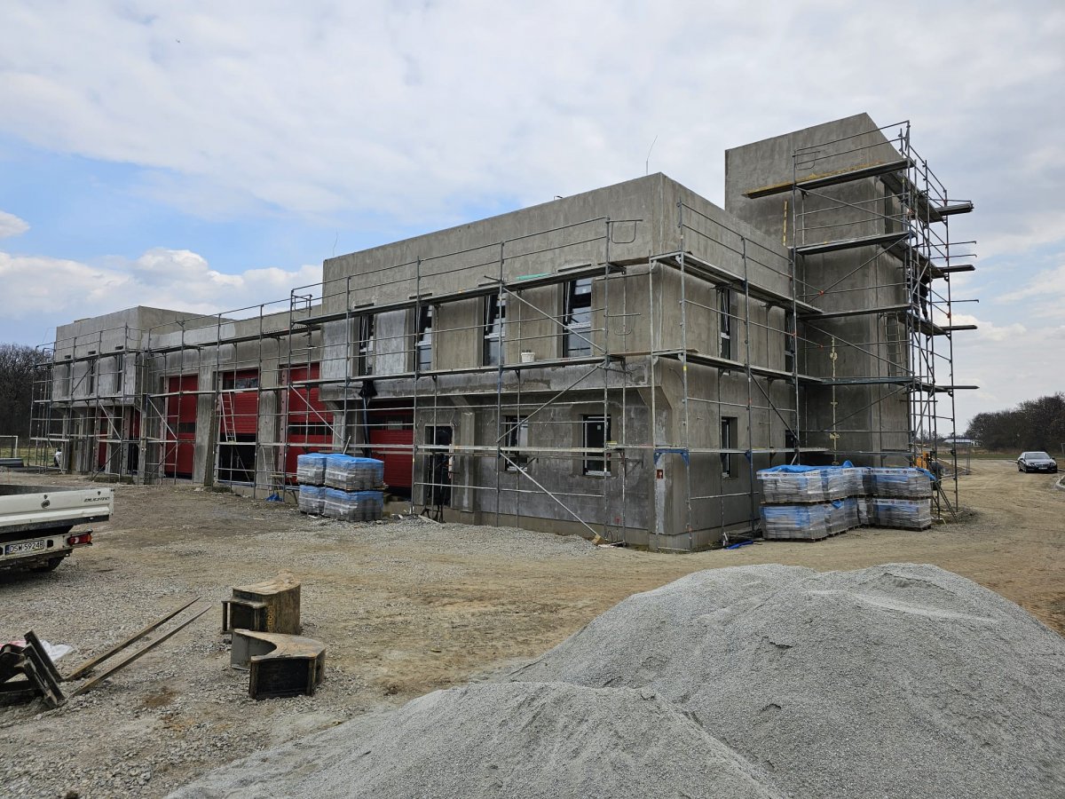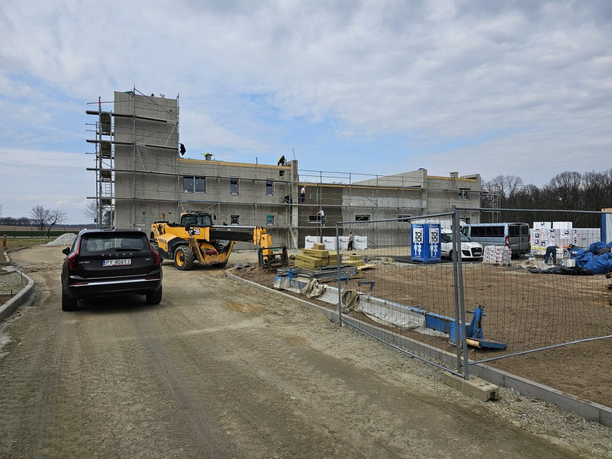 Obecnie realizowana inwestycja znajduje się na zaawansowanym etapie prac budowlanych, obejmującym zarówno roboty zewnętrzne, jak i wewnętrzne. Na zewnątrz budynku zakończono już kluczowy etap związany z wykonaniem kompleksowego docieplenia ścian oraz dachu. Równocześnie przygotowano powierzchnie pod wykonanie tynków elewacyjnych oraz prace malarskie.
