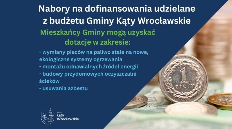 Od 2 stycznia 2026 r. ruszają nabory na dofinansowania udzielane z budżetu Gminy Kąty Wrocławskie.