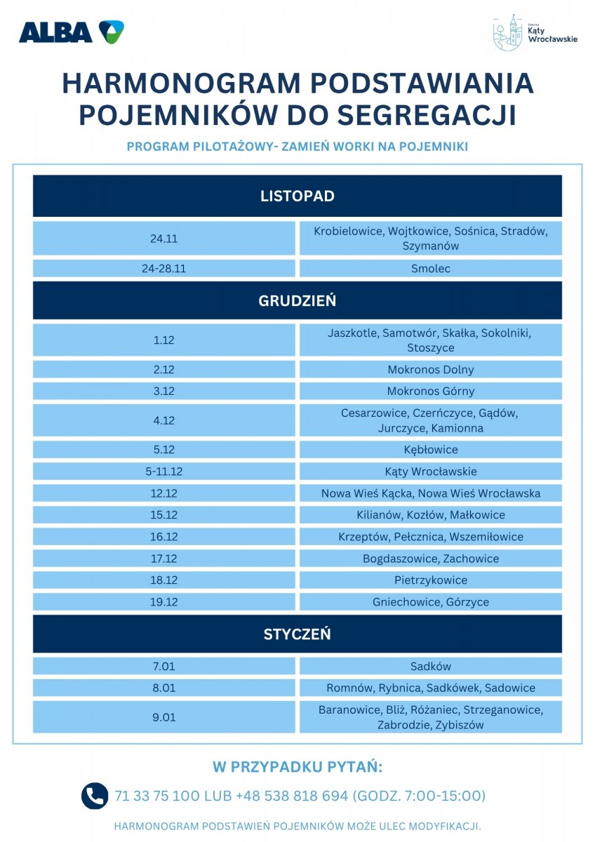 Harmonogram podstawiania pojemników znajduje się poniżej.