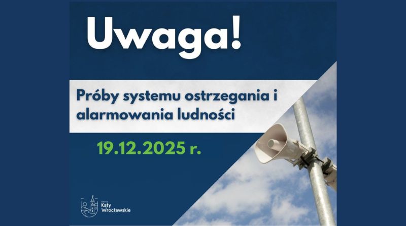W dniu 19 grudnia w godzinach 11:00-11:30 na terenie miasta i gminy Katy Wrocławskie zostanie przeprowadzony trening uruchamiania syren alarmowych
